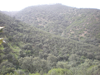 Este podria ser el lema de estos dos primeros dias de temporada. Lo cierto que esta moda que nos impusieron los "ecologistas" de la Junta de Andalucia de adelantar un fin de semana la apertura de la caza mayor no es sino ir en contra de las normas basicas de la naturaleza. !!!!que calor!!!! hoy hemos estado cazando a 35 grados (y no es broma, es lo que ponia el termometro), por eso no le podemos pedir grandes cosas a los resultados de unas monterias , cuando el gran secreto de una monteria son los perros, y los perros son animales que necesitan unas condiciones mínimas para poder cazar con eficacia. Os pongo estas fotos del puesto de hoy, el 6 del barranco de la Lobera de la finca El Quinto de los Cuellos, apriori uno de los mejores puestos de la monteria, y he dicho bien...a priori, porque " a finali" nada de nada. Como podeis comprobar el puesto es una maravilla, sin embargo, no se ha levantado nada en toda la solana.....evidentemente.